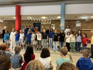 Neben den Aufführungen der Klassen hatten die Niederländisch-AGs beider Standorte das Bewegungslied „Tsoe Tsoe Wa“ vorbereitet